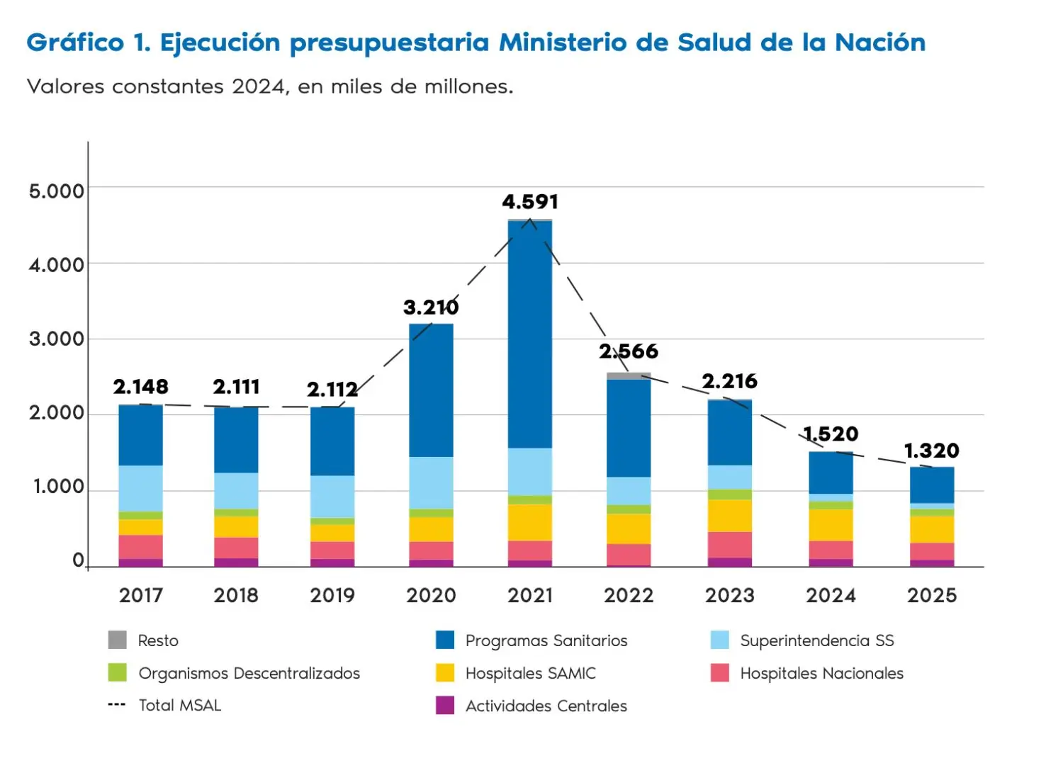 Es lo que muestra un informe de laFundación Soberanía Sanitaria que analiza las principales transformaciones introducidas en materia de medicamentos, programas sanitarios, formación de recursos humanos, financiamiento hospitalario y funcionamiento de organismos estratégicos en materia de salud en el bienio 2024-2025. De acuerdo con datos oficiales, en este período el presupuesto del organismo se redujo un 34% en relación con 2023 y se alcanzaron altos niveles de subejecución.